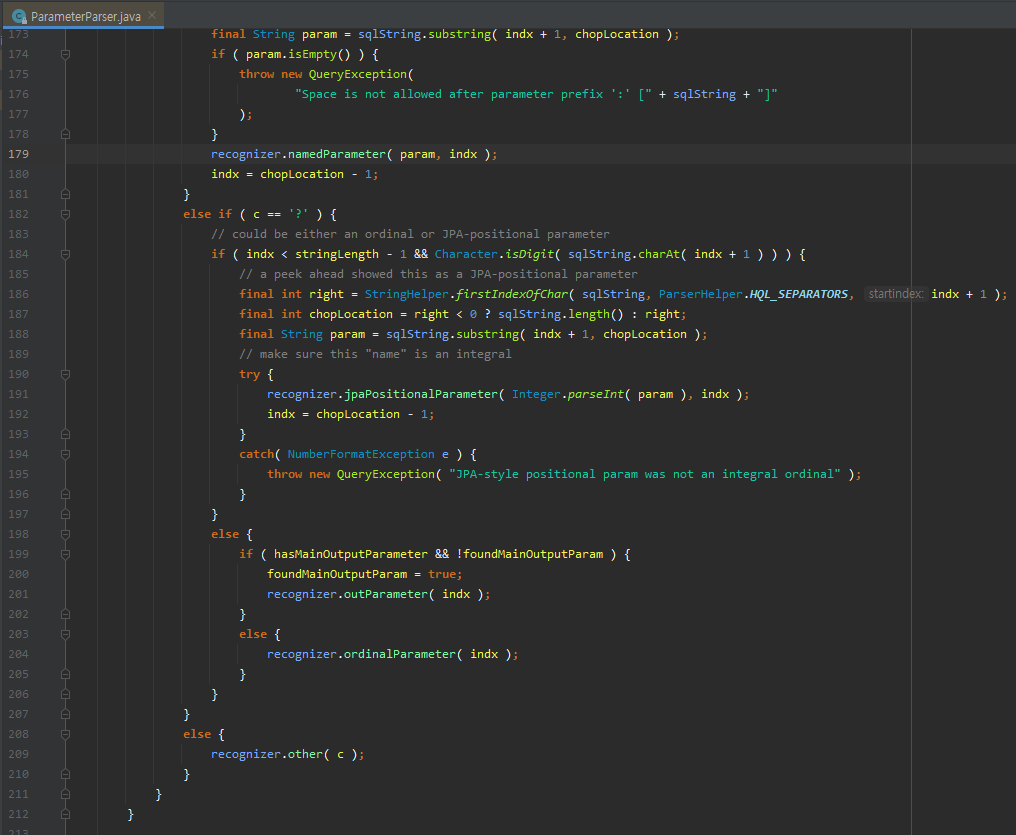 해당 예외 메시지로 검색을 해보면 `org.hibernate.engine.query.spi.ParameterParser` 를 찾을 수 있다.