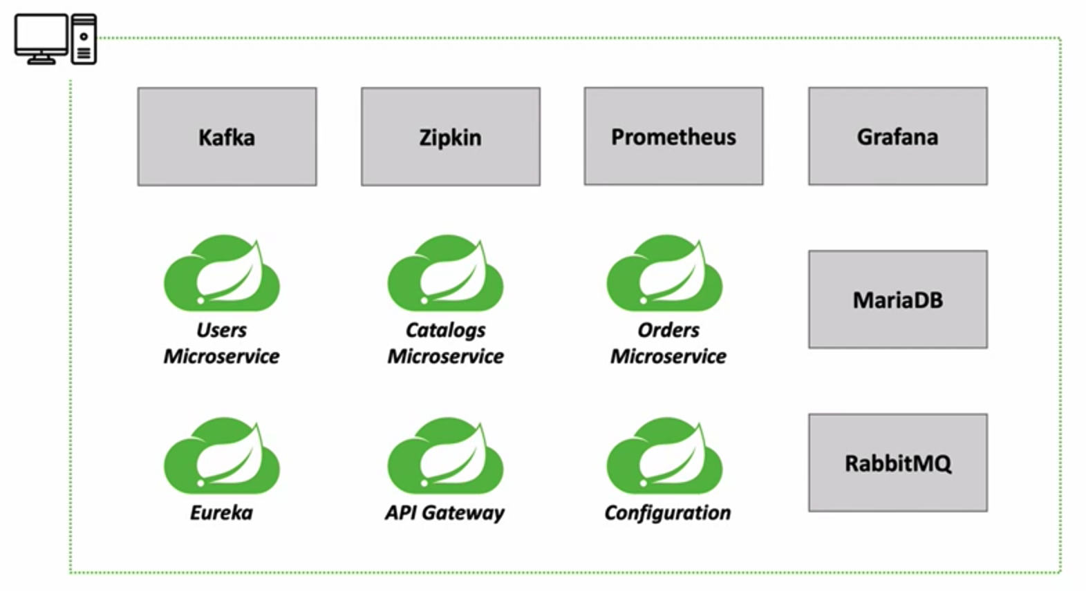 우리의 마이크로서비스들은 개발자의 PC에서 아래의 이미지와 같이 독립적으로 실행되고 있다.