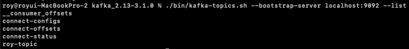 $ ./bin/kafka-topics.sh --bootstrap-server localhost:9092 --list