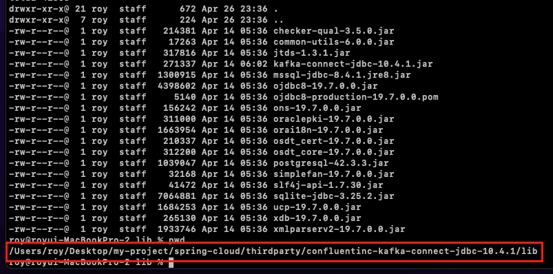 아래의 이미지와 같이 confluentinc-kafka-connect-jdbc 경로의 lib 디렉토리 경로를 확인한다.