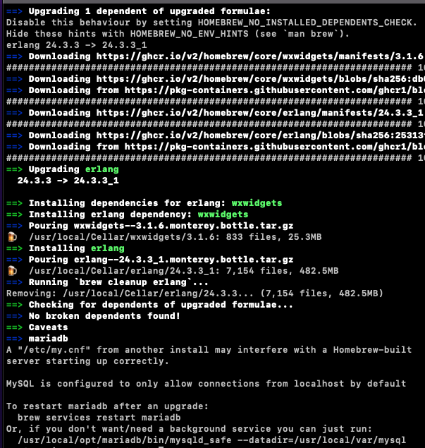 아래의 커맨드를 입력하여 Brew를 통해 MariaDB를 설치해본다.
