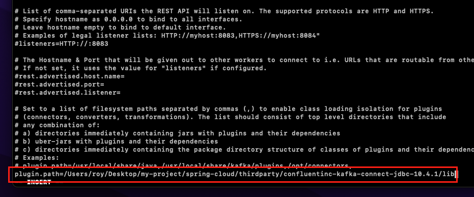 {confluent 설치경로}/etc/kafka/ 경로의 connect-distributed.properties 파일을 아래와 같이 수정한다.