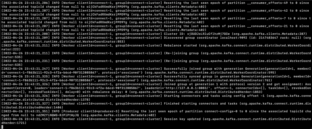 $ ./bin/connect-distributed ./etc/kafka/connect-distributed.properties